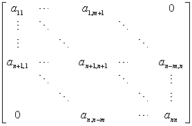 的方阵A=(aij)称为带型矩阵.2m+1称为带宽.一般形式为