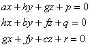 l,m,n变动时,这个方程表示一个平面把,由此二次曲面的直径平面组成一个平面把.把内任一平面都通过下列三个平面的交点:
