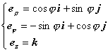 [圆柱面坐标系的单位矢量]  对于圆柱面坐标系(8.11)