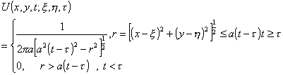 的解为波动方程柯西问题的基本解,它的形式为