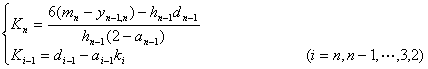利用S(x)一阶导数的连续性及边界条件可以给出确定![]()