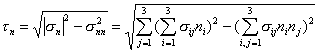 这表明,一个点的应力状态完全由该点的六个应力分量{s}所决定.例如,作用于上述斜面的正应力为