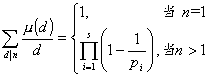 2° μ(n)为积性函数,但非完全积性函数.