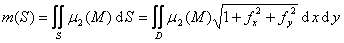 式中DSOxy平面上的投影区域,S的方程为z=f(x,y),x,yD.这种形式的积分称为函数(M)关于曲面元素dS的积分.