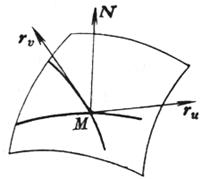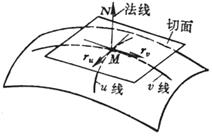 称为坐标矢量,它们分别是u线和线在点M的切矢量(图7.24