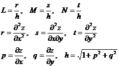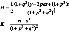 式中EFG为曲面的第一基本量,LMN为曲面的第二基本量。