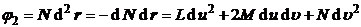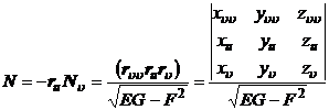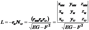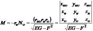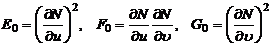 式中偏导数等在点取值,EFG为第一基本量,N为曲面在点M的法线单位矢量。
