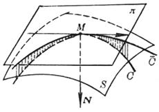 [测地曲率与贝尔特拉米公式]  M为曲面S上一点,CS上通过点M的一条曲线,SM的切面,C上的正射影,则M的曲率称为CM的测地曲率,记作.