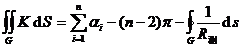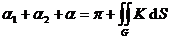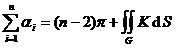 表示曲线C上任一点的测地曲率,为曲面面积元素,分别为C的角点的内角(图),则在G上的二重积分