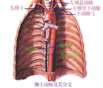 呈弓状凸向上,凸侧发出三大分支自右至左依次是头臂干、左锁骨下动脉、左颈总动脉。 Arcuate was protruding upward, the convex side of the three branches issuing from right to left is the brachiocephalic, left subclavian artery, the left common carotid artery. 头臂干又分为右锁骨下动脉、右颈总动脉。 Brachiocephalic is divided into the right subclavian artery, right common carotid artery. 左右颈总动脉分布于头颈部。 The total distributed around the carotid artery in the head and neck. 左右锁骨下动脉分布于上肢。 Under the left subclavian artery located in the upper limbs.