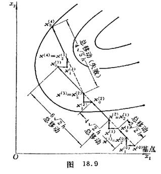 (1)         Select an initial point ( base point ) , a set of steps and a set of directions , where the upper index represents the first stage, and the lower index represents the first direction. At that time , the exploration direction was generally chosen to be parallel to the coordinate axis direction.