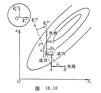 (2)         Perform successive explorations parallel to each of the n directions in turn. If the movement is successful, the new point is adopted, and if the movement is unsuccessful, the base point is retained. If the movement in a given direction is successful, the next time you explore in this direction, the step size will be doubled ; if it fails, it will be reduced to double , and the negative sign indicates exploration in the opposite direction. Generally take .