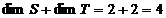 [ Second dimension theorem ] Let S and T be two subspaces of linear space V , then