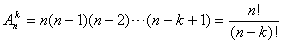 [选排列] 从n个不同的元素中,每次取出k个(k≤n)不同的元素,按一定的顺序排成一列,称为选排列.其排列种数为