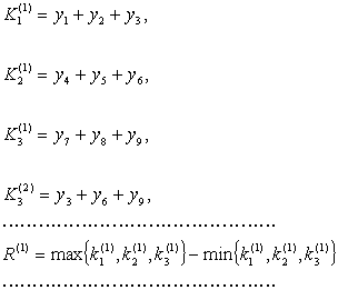 [正交表的直观分析]  1° 计算第i水平的水平和Ki与水平均值ki例如用安排的四因素3水平的试验方案,可列出直观分析表如下: