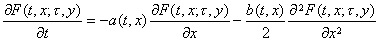 [柯尔莫哥洛夫第一方程]  如果扩散过程的条件分布函F(t,x;τ,y)的偏导数
