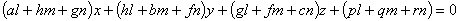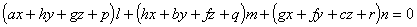 当l,m,n变动时,这个方程表示一个平面把,由此二次曲面的直径平面组成一个平面把.把内任一平面都通过下列三个平面的交点: