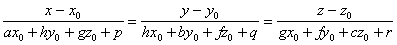 在点M与二次曲面的切面垂直的直线称为曲面在点M的法线,它的方程可写为