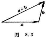 把矢量的始点移到原点O,以ab为边作平行四边行,由原点作出的对角线就表示和矢量ab(称为平行四边形法则,见图8.2);或者把二矢量首尾相接,由始点到终点的矢量即为和矢量a+b(称为三角形法则,见图8.3).