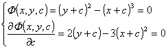 [c-判别曲线法]  设一阶微分方程的通解为,其c是任意常数,把c看成参数.从下面方程组
