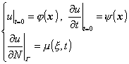 如果在有界区域Q:D×(0,T]中考虑波动方程,记的侧边界为Γ,则混合问题的定解条件是