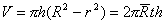 R为外半径,r为内半径,h为高