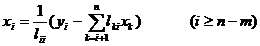Substitute x n into the n -th equation, solve it , and then substitute x n into the n -th equation to solve , ... , and finally substitute the solved x 2 , x 3 , ... , x n into the first Solve the equations for x 1 .![]()